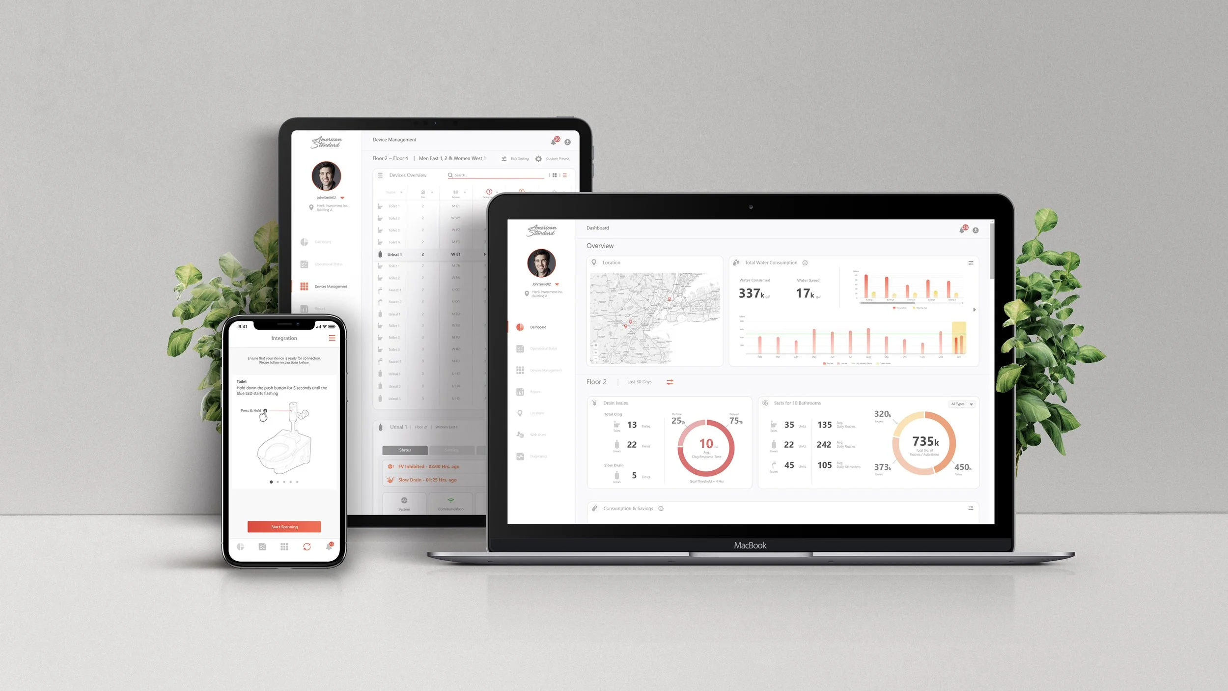 The DetectLnk® is an integrated commercial bathroom management solution, combining cloud-enabled toilets, urinals, and faucets as interconnected hardware, with web and mobile applications providing seamless software integration. This system redefines restroom functionality, enabling efficient, data-driven facility management with sleek hardware design and a user-centered digital interface.